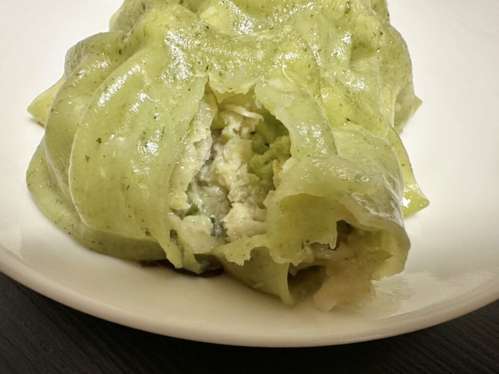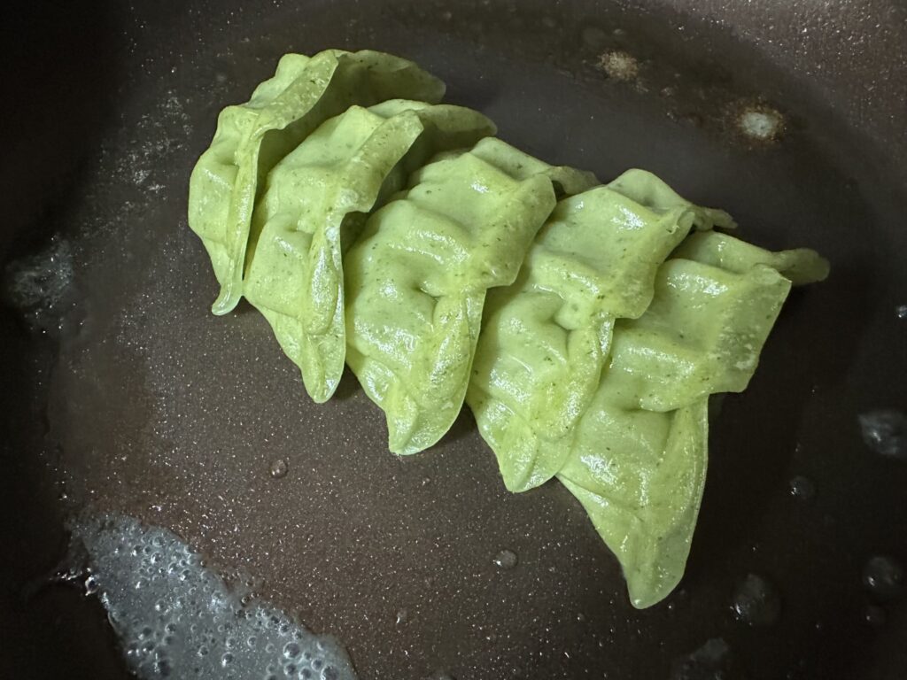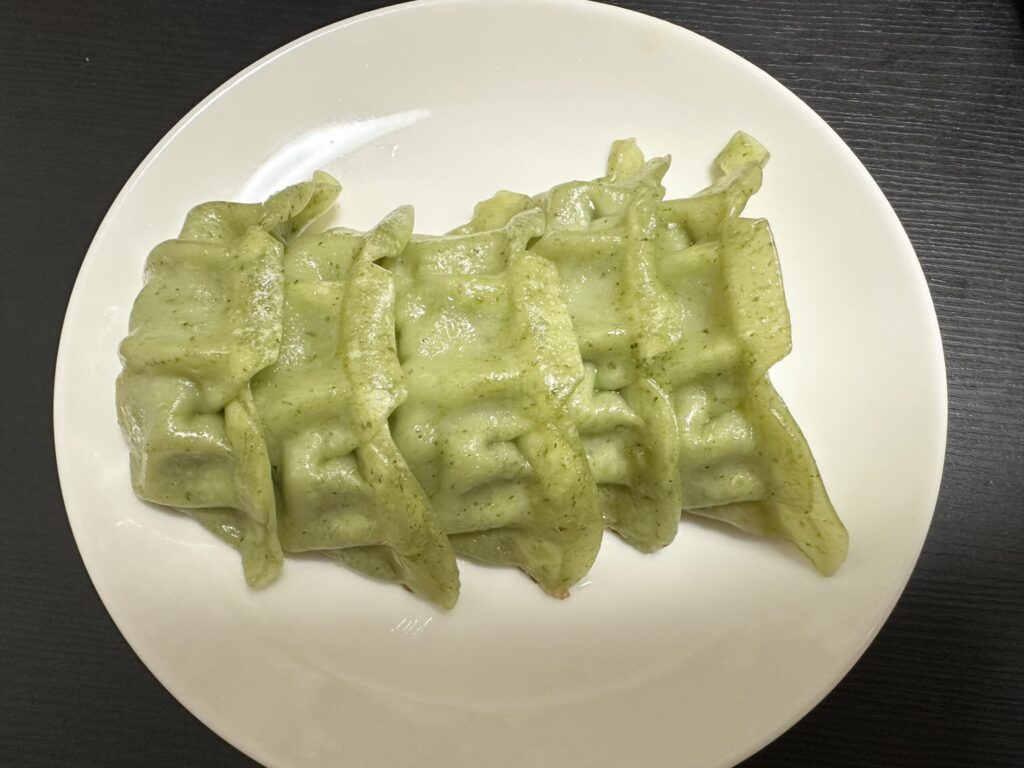 これは、餃子の皮に地域特産の野菜である「雪菜」を練りこんでいるからです。