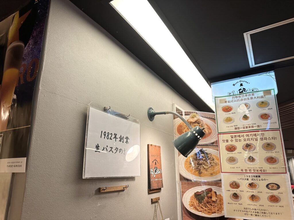 地下街の割と端の方にあるので少し迷うかもしれませんが、近くまで行くとパスタの写真が目印になって、すぐにわかるでしょう。少し並びましたが、回転は悪くありませんでした。