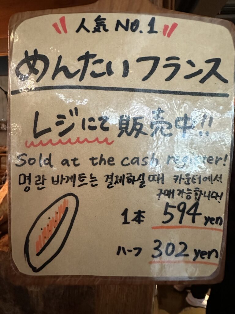 お目当ては明太フランスです。福岡らしい定番の組み合わせではあるのですが、パンストックのそれは別格で、外はしっかりとしたバゲットの食感、中は明太子のうまみがじゅわっと広がります。これを食べるためだけに並ぶ価値があります。