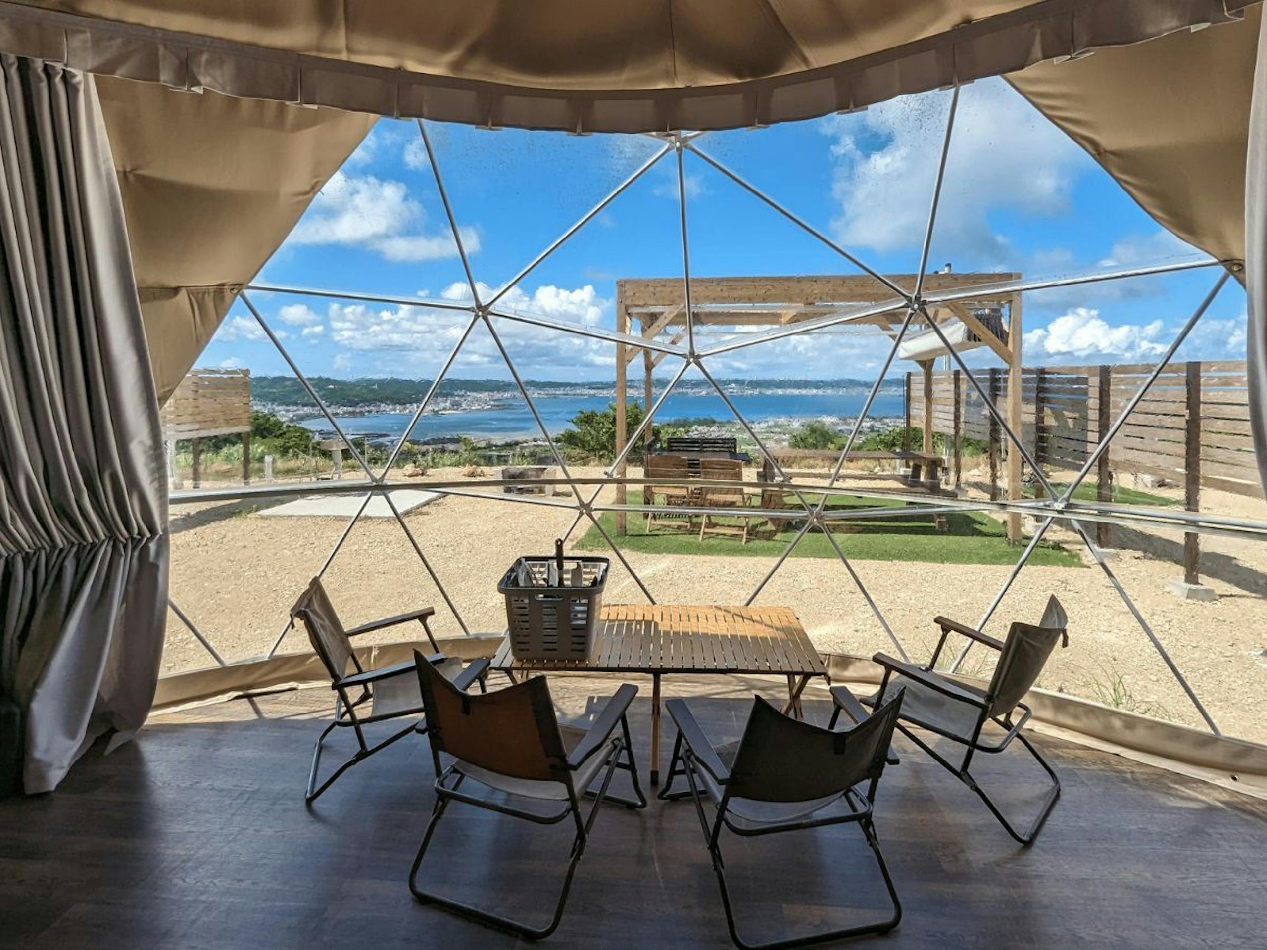 エイトポイントリゾート沖縄は、那覇空港の南東にある南城市にあるグランピングができる宿泊施設で、2022年12月オープンと新しいです。ドーム型のテントは新鮮!ベッドもしっかりしていて1つのテントで4名まで宿泊可能、中にシャワールームもあります。